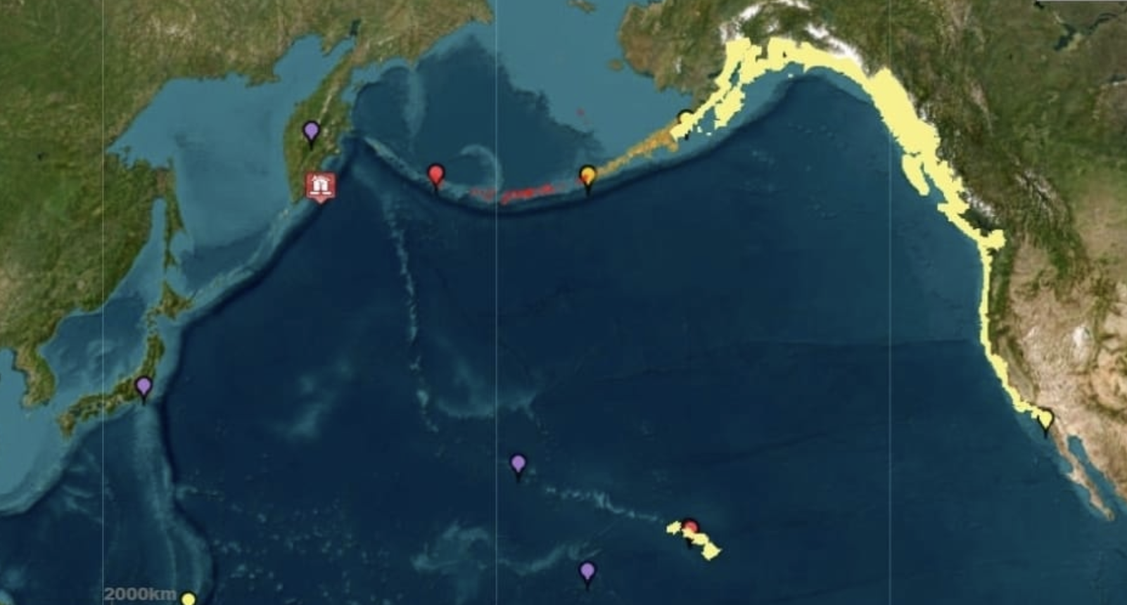 Un terremoto de magnitud 8.7 en las costas rusas, cerca de las Islas Aleutianas, generó una alerta de #tsunami para toda la costa del Pacífico, desde Alaska hasta San Diego, California. Se estima que las olas podrían llegar a Hawái en aproximadamente cuatro horas y a California… pic.twitter.com/ephfkCYTzU