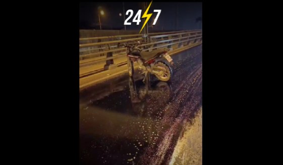 Alerta en el puente de la Unidad Nacional: moto abandonada sobre combustible genera preocupación