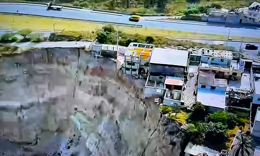 Un socavón de gran magnitud se formó en el sector de Pomasqui, a pocos metros de la avenida Simón Bolívar, una de las vías más transitadas de Quito, por donde circulan más de 20 mil vehículos diarios, generando preocupación por un posible colapso.