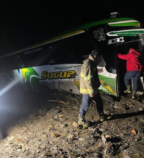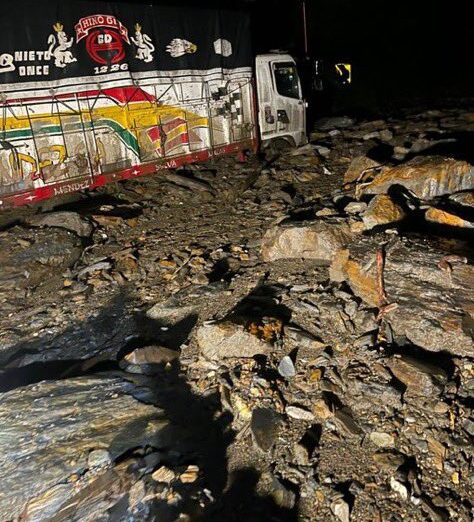 Fuertes precipitaciones en la zona habrían provocado la caída de material lodos y rocas sobre la calzada, cerrando el paso vehicular y dejando varios vehículos atrapados, incluidos un bus de transporte y camiones, según reportes preliminares de las autoridades.