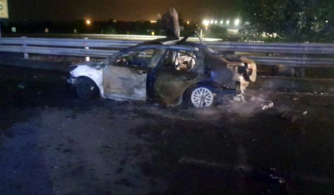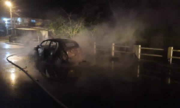 La segunda explosión se dio en Machala, en el puente Bella India, este fue reportado por un ciudadano quien mencionó que varios sujetos disparaban contra el auto mientras este se quemaba.