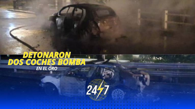 Dos coches bomba detonaron en la provincia de El Oro, uno de estos contenía varios cilindros de gas, por lo que fue consumido rápidamente por las llamas.