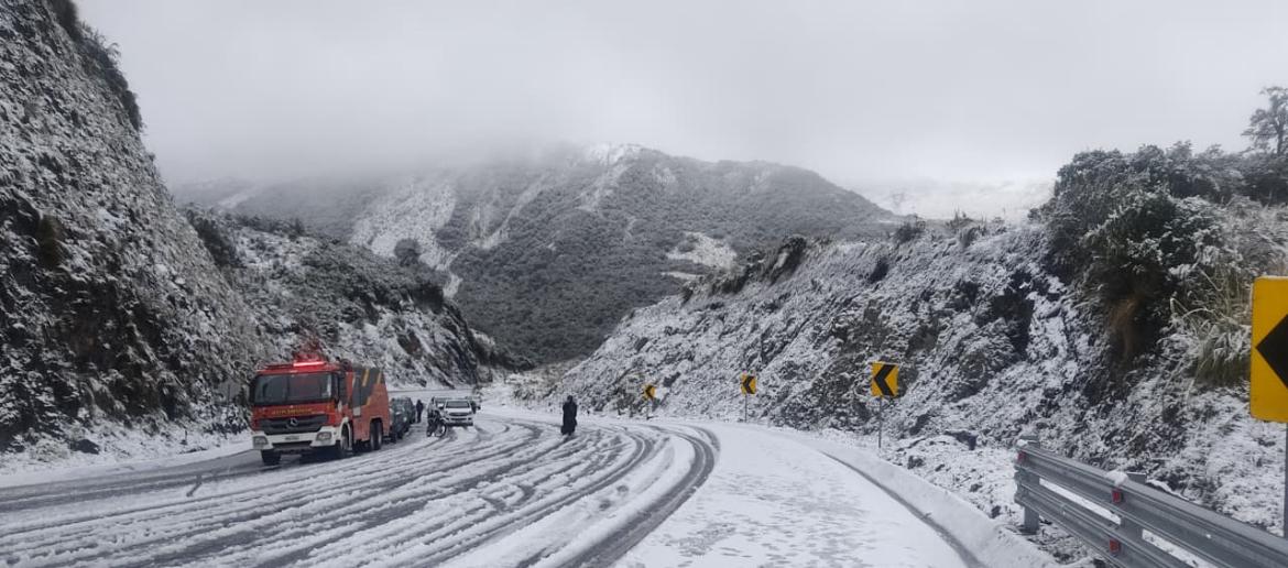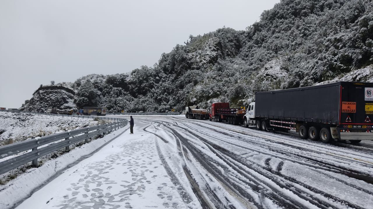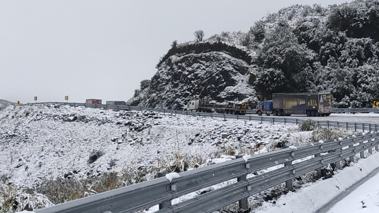 El fenómeno natural dejó la carretera completamente cubierta de blanco, obligando a muchos vehículos a detenerse en la cuneta por la poca visibilidad y el riesgo de accidentes. Fotos y videos viralizados en redes sociales muestran la impresionante capa de nieve que cayó en cuestión de minutos.