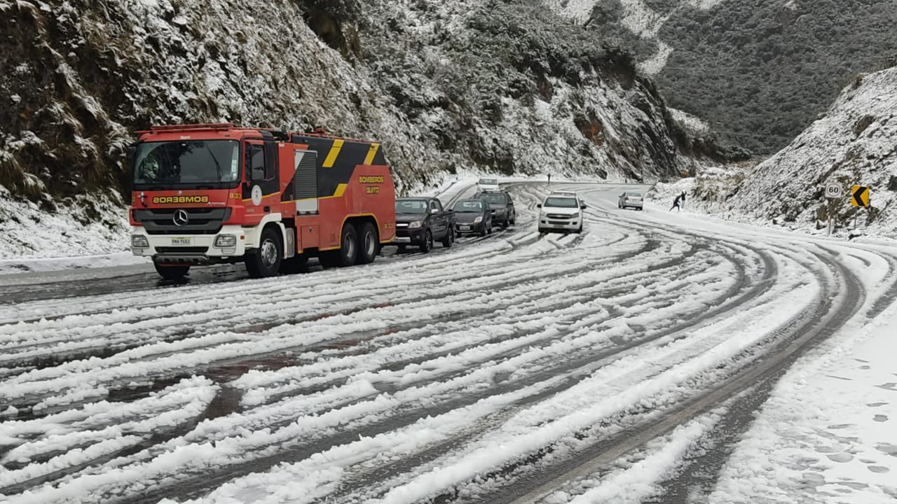 El Ministerio de Infraestructura y Transporte confirmó el cierre del tramo Y de Palugo – Virgen de Papallacta. Maquinaria especializada ya trabaja en el desalojo de la nieve para habilitar la circulación lo antes posible.