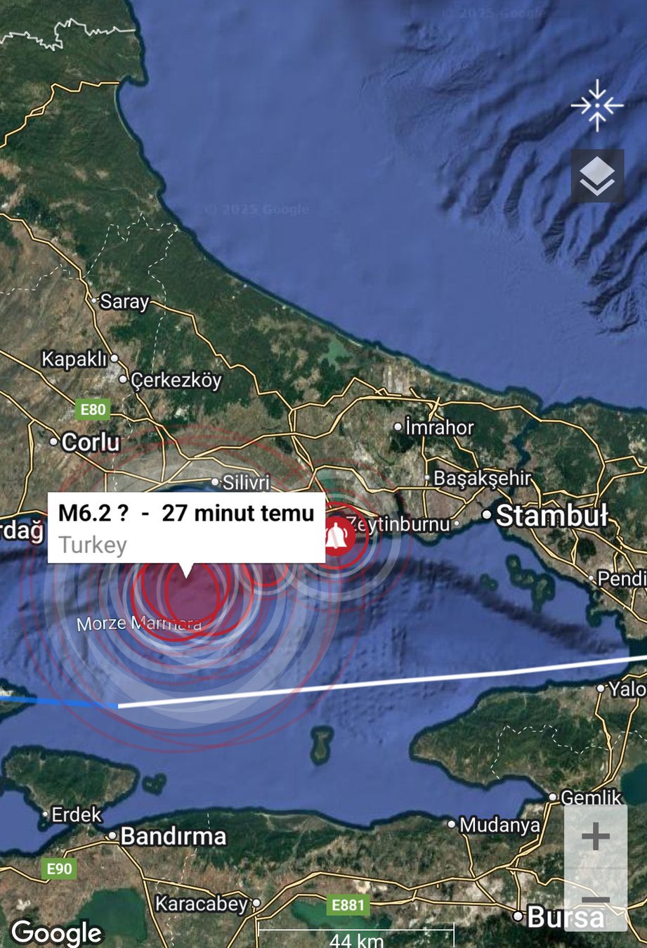 Un fuerte sismo sacudió este miércoles la región cercana al Mar de Mármara, estremeciendo a Estambul y generando temor entre sus más de 16 millones de habitantes. El movimiento telúrico, registrado a las 12:49 p.m. (hora local), alcanzó una magnitud de 6,2 según datos preliminares. Su epicentro estuvo ubicado frente a la costa de Silivri, a una profundidad de casi 7 km, de acuerdo con el informe de la Agencia de Gestión de Desastres y Emergencias (AFAD).