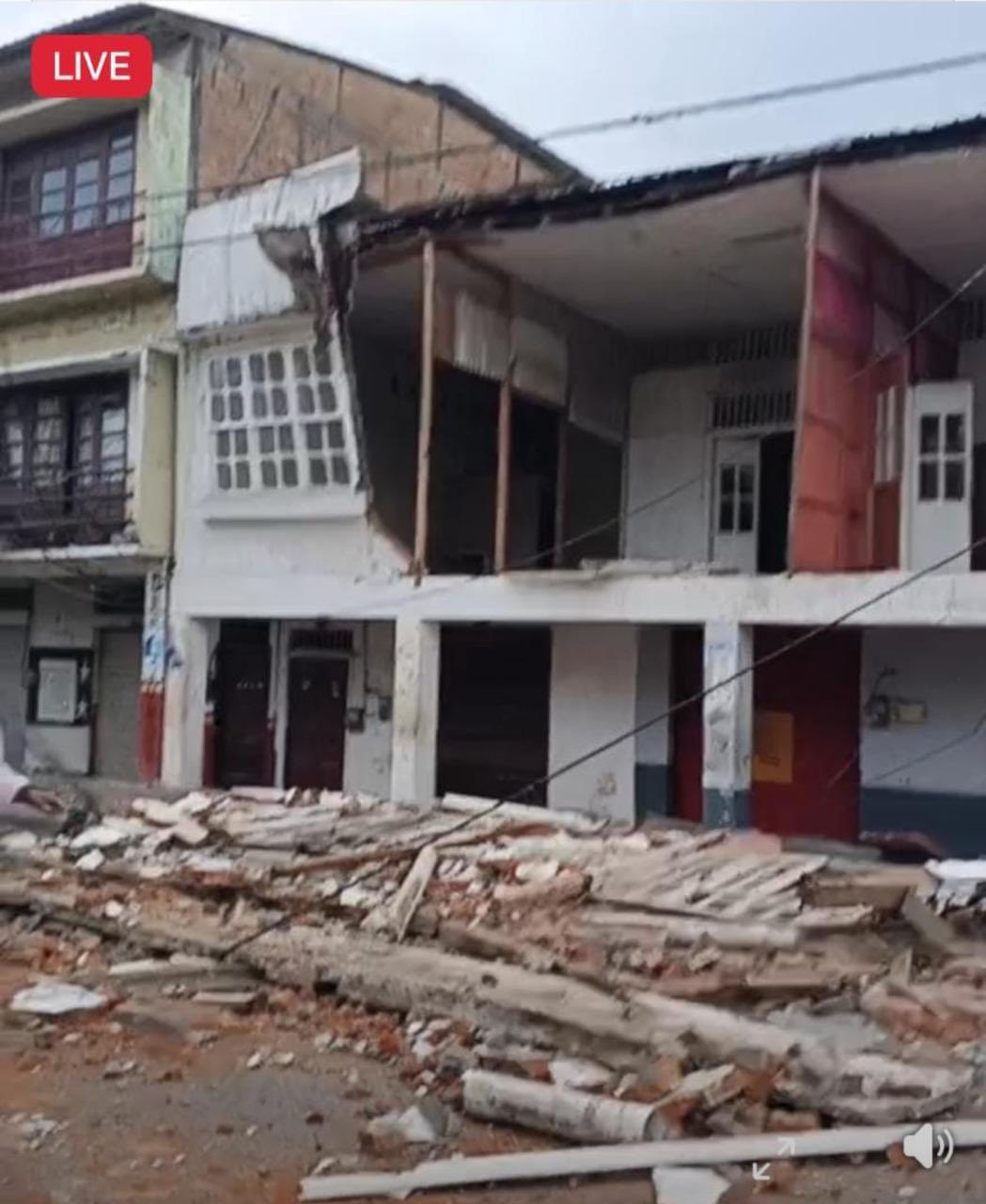 Las imágenes del desastre muestran fachadas colapsadas, paredes cuarteadas y mampostería caída. En uno de los casos más dramáticos, el frente completo de una vivienda se vino abajo, dejando el concreto esparcido sobre la vía pública.