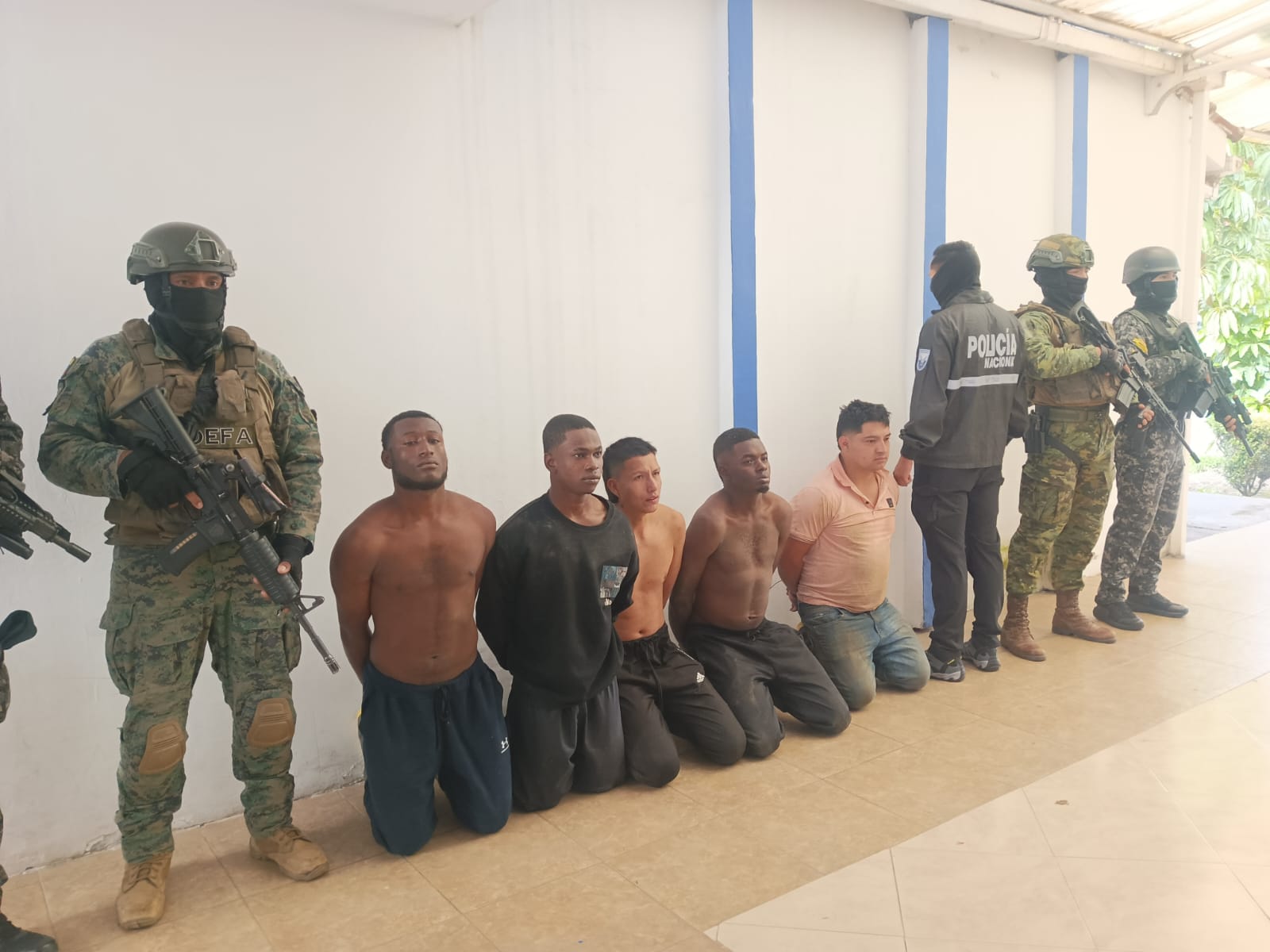 Durante la intervención fueron aprehendidos cinco presuntos integrantes del Frente Oliver Sinisterra (FOS), grupo armado de origen colombiano con presencia en la frontera norte del país. Los detenidos, identificados como M. M. Jhoner Alexis, Q. V. Jhohan Steven, V. M. Welber Jair, R. A. Jair y B. V. Rolando Alexander, fueron trasladados vía aérea hacia las autoridades judiciales competentes.