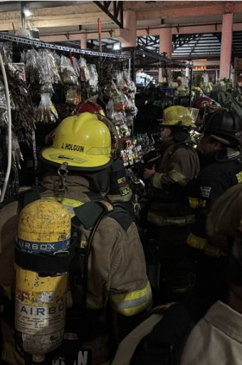 De acuerdo con versiones preliminares, el incendio se habría originado por una vela encendida en un puesto de inciensos, que quedó encendida al cierre de la jornada y terminó provocando el fuego que arrasó con los locales contiguos.