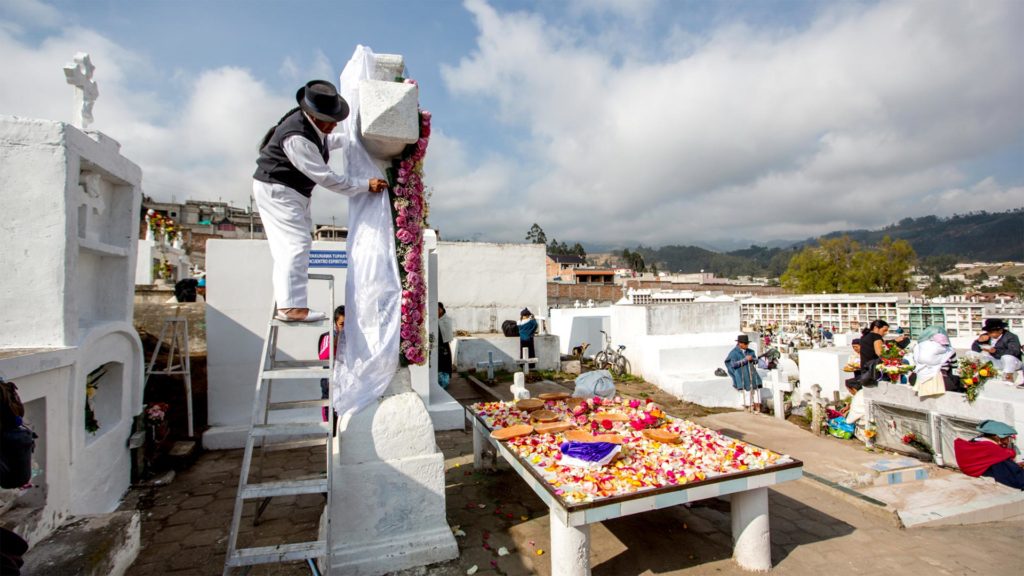 Cada 2 de noviembre, los ecuatorianos conmemoran a sus seres queridos fallecidos. La forma en que realizan estos homenajes varía según la región en la que se encuentren. Por ejemplo, en algunas comunidades de la Sierra, visitan los cementerios llevando alimentos para compartir, continuando una costumbre transmitida por sus ancestros.