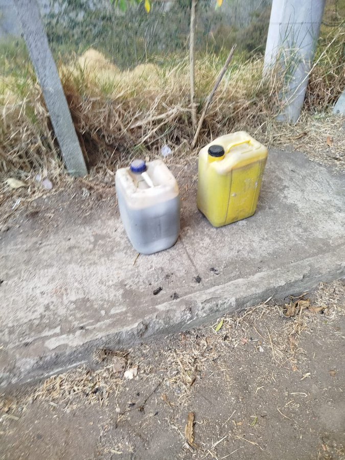 Agentes de Tránsito de Quito encontraron tres canecas con una mezcla de aceite y diésel cerca de la iglesia de Guápulo. Se investiga si estos objetos están relacionados con el incendio forestal en esa área.