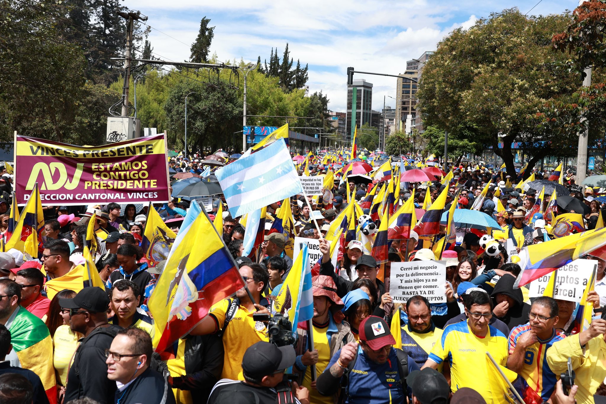 La protesta surge luego de que la Corte Constitucional suspendiera provisionalmente 17 artículos de tres leyes consideradas por el Ejecutivo como pilares fundamentales en la lucha contra la delincuencia y el narcotráfico en Ecuador. Estas normas corresponden a la Ley de Solidaridad Nacional, la Ley de Integridad Pública y la Ley de Inteligencia. Mientras que las dos primeras fueron enviadas con carácter de urgente económico por el presidente Noboa a la Asamblea Nacional, la Ley de Inteligencia fue tramitada en la Comisión de Seguridad.