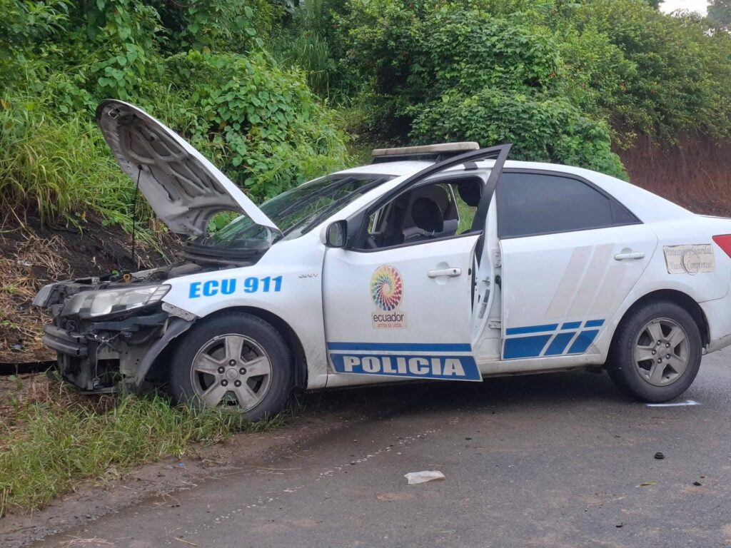 Un choque entre un patrullero de la Policía Nacional y un vehículo particular dejó dos policías heridos en la vía a San Carlos, a la altura de la Ruta Ecológica, en el cantón Quevedo.