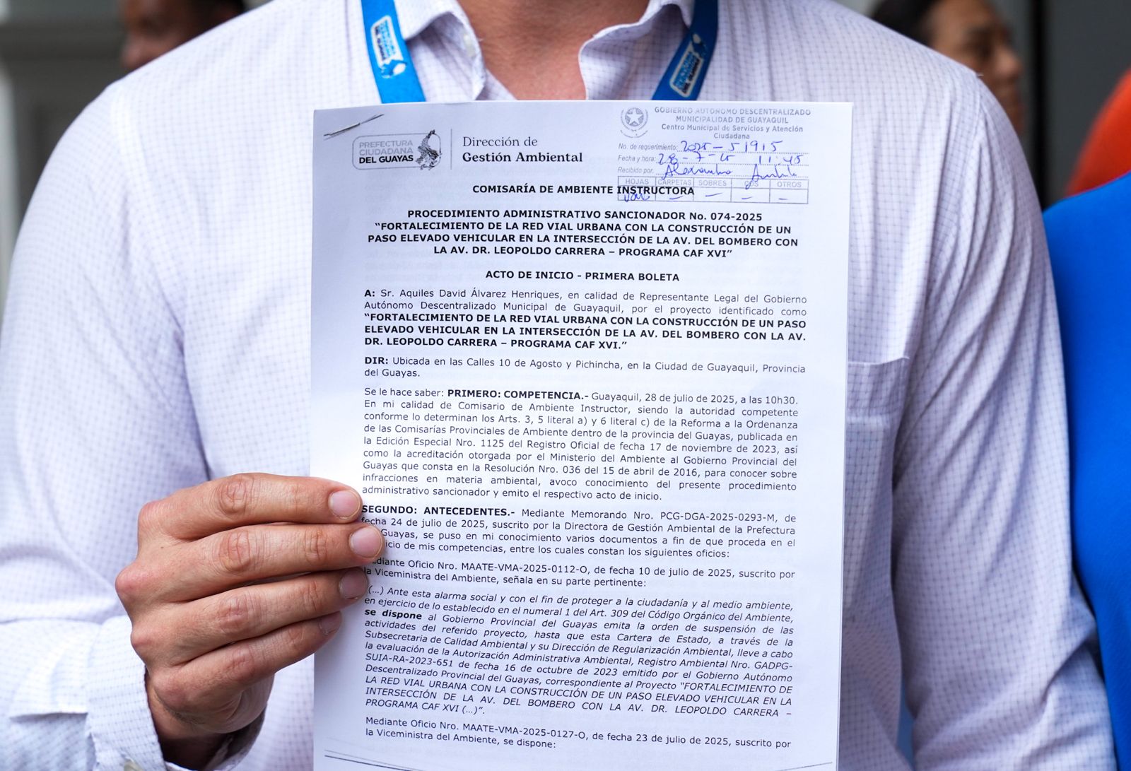 La Prefectura sanciona al Municipio de Guayaquil por la construcción del paso elevado en Los Ceibos, tras orden del Ministerio del Ambiente.