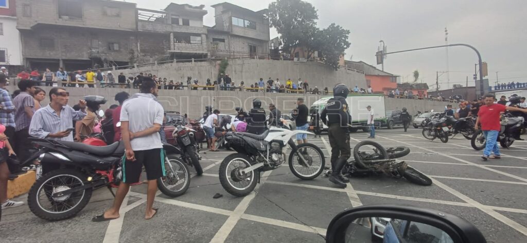 El ECU911 recibió la alerta a las 13:31, confirmando que en el hecho participaron dos automóviles y una motocicleta. Los dos ocupantes de la moto fueron lanzados a la calzada, quedando tendidos sobre el pavimento mientras unidades de emergencia se desplazaban al lugar.