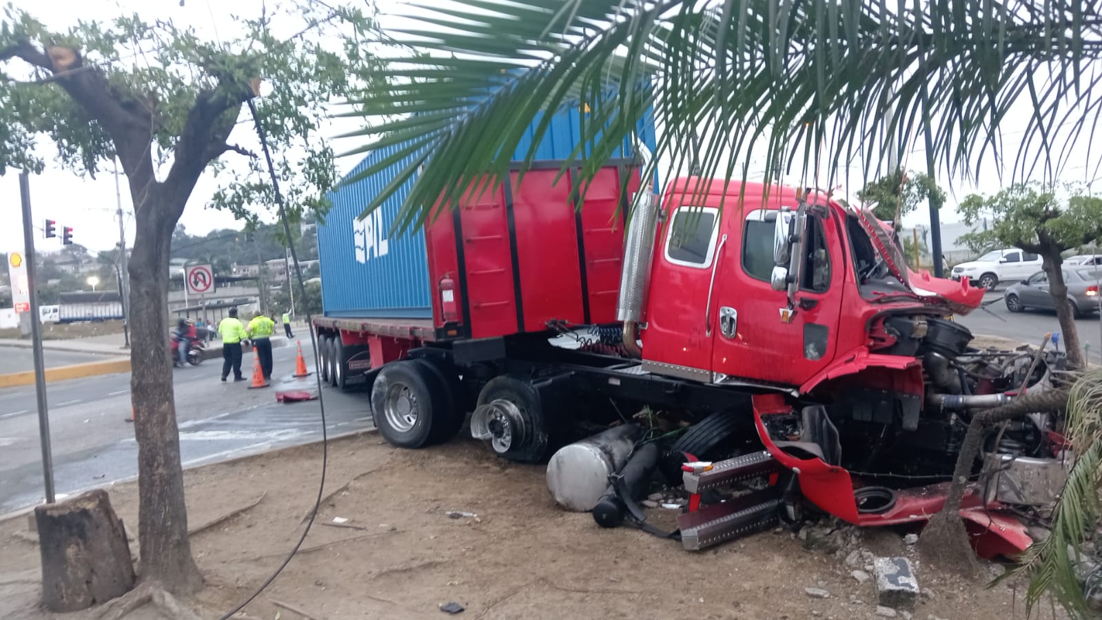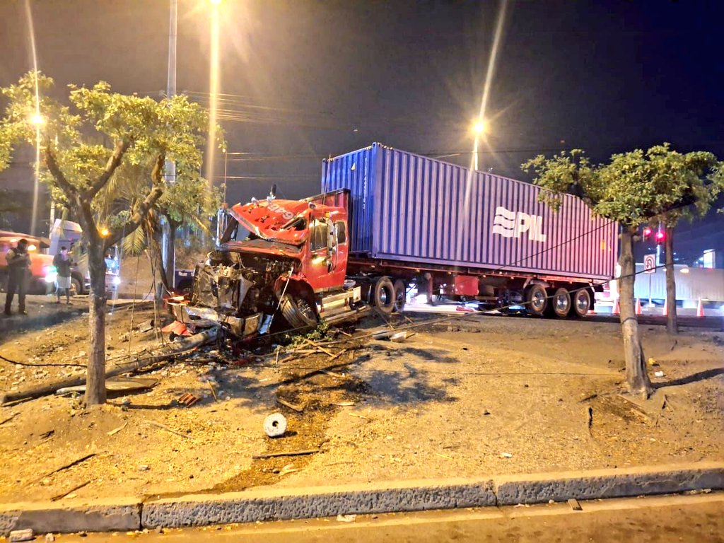Un accidente de tránsito registrado la madrugada de hoy jueves en el kilómetro 19.5 de la vía a Daule, a la altura de Ciudad Santiago, provocó un verdadero caos vehicular y escenas de tensión. Un tráiler de carga pesada, que aparentemente perdió pista, se estrelló contra un poste de alta tensión, derribándolo y dejando otros más a punto de colapsar.