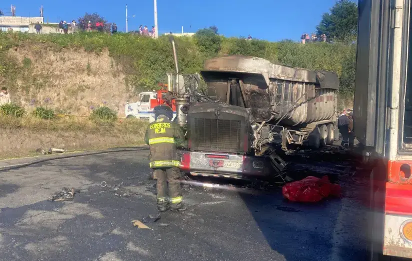 Un grave siniestro de tránsito registrado a las 05:30 de este jueves 11 de diciembre de 2025 dejó un fallecido y severas afectaciones en la vía Alóag–Santo Domingo, en el cantón Mejía. Según el ECU 911, dos tráileres impactaron de manera frontolateral a la altura del kilómetro 2,5, muy cerca de la línea del tren, provocando un incendio que consumió por completo a uno de los vehículos pesados.