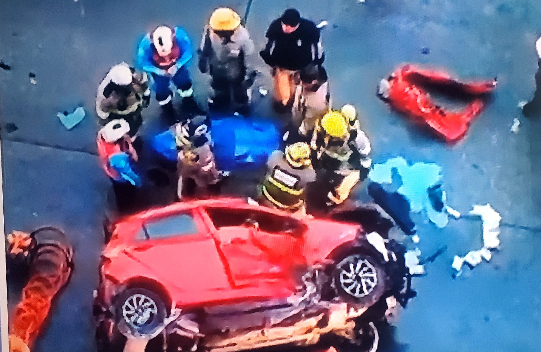 El impacto fue tan fuerte que el automóvil quedó completamente destrozado. En el lugar quedaron esparcidos varios objetos personales de la conductora, entre ellos cosméticos, un cargador de celular y un recipiente con comida, lo que da cuenta de la magnitud del siniestro.