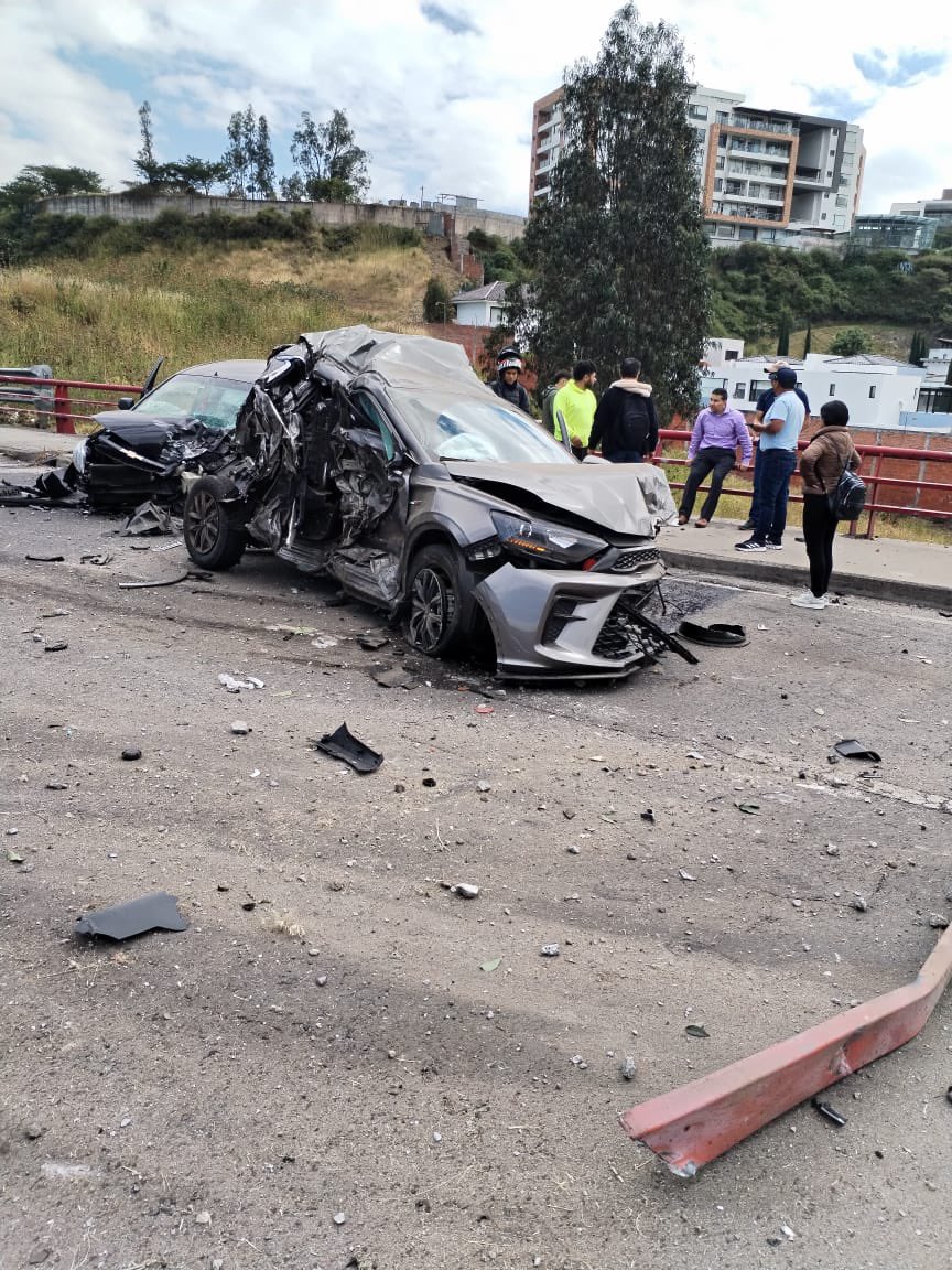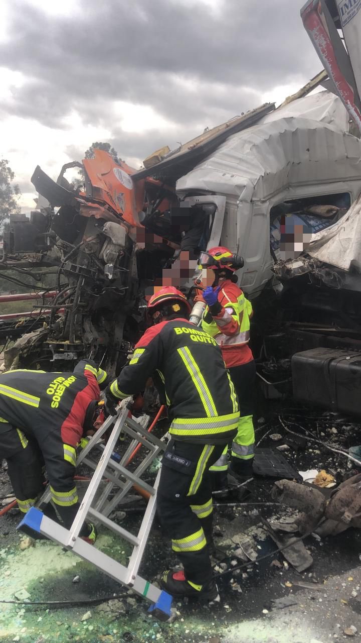 El Cuerpo de Bomberos de Quito (CBQ) y la Agencia Metropolitana de Tránsito (AMT) responden a la emergencia.