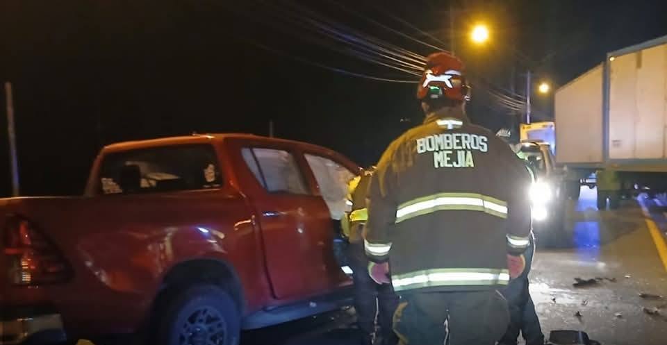 El choque brutal involucró una camioneta y un tráiler, dejando como saldo una persona fallecida y dos heridas. El Cuerpo de Bomberos de Mejía intervino con maniobras de extricación vehicular para liberar a las víctimas atrapadas en el vehículo liviano.