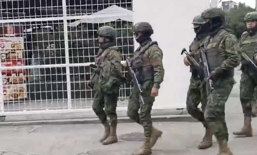 #AHORA | Un pelotón militar refuerza el control interno y externo en las instalaciones de Ecuador TV, sede del #DebatePresidencial2025, que se realizará esta noche entre @DanielNoboaOk y @LuisaGonzalezEc. pic.twitter.com/Os3NsCxYyX