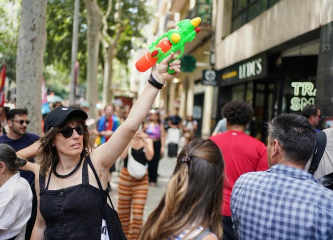 🇪🇸 | Manifestantes de Barcelona rociaron a los visitantes con pistolas de agua como parte de una manifestación contra el turismo de masas. pic.twitter.com/SAKtPJ3UQL