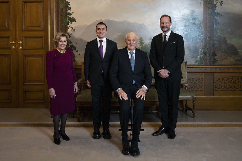 Daniel Noboa fortalece relaciones bilaterales en Noruega tras reunirse con el rey Harald V y el príncipe Haakon Magnus