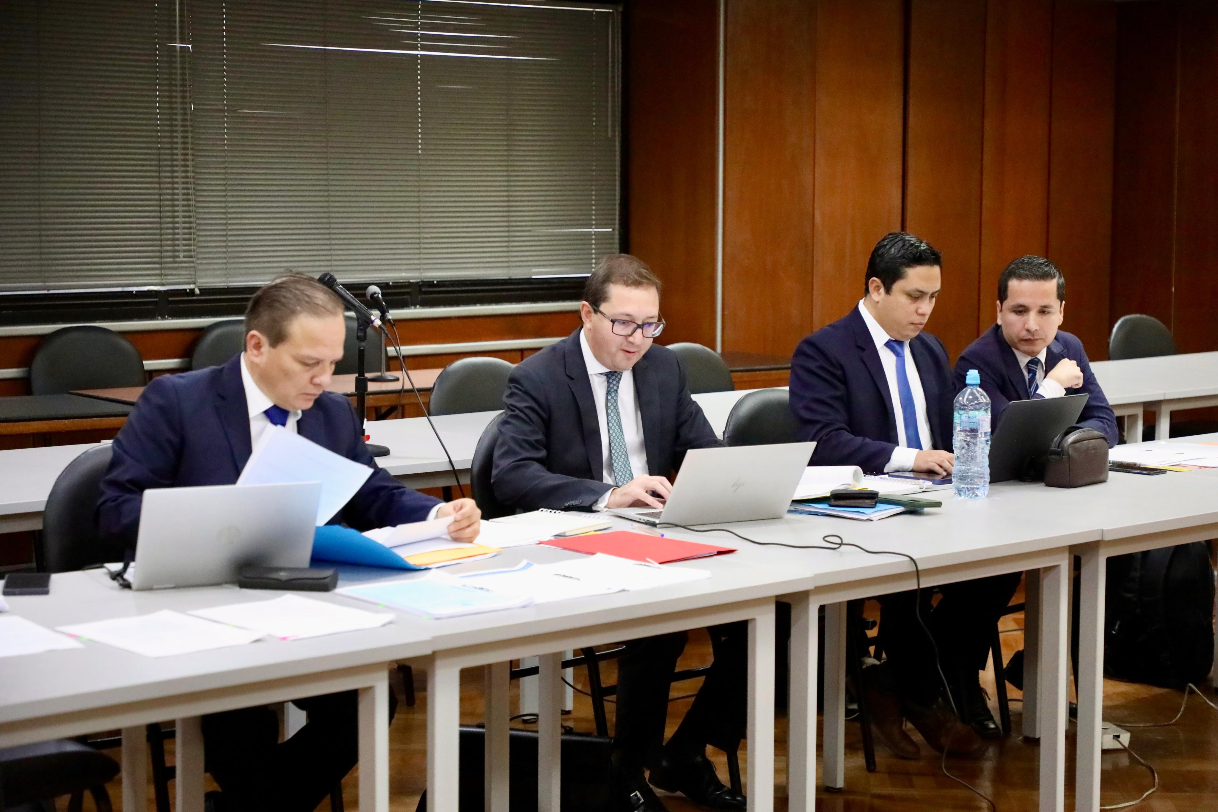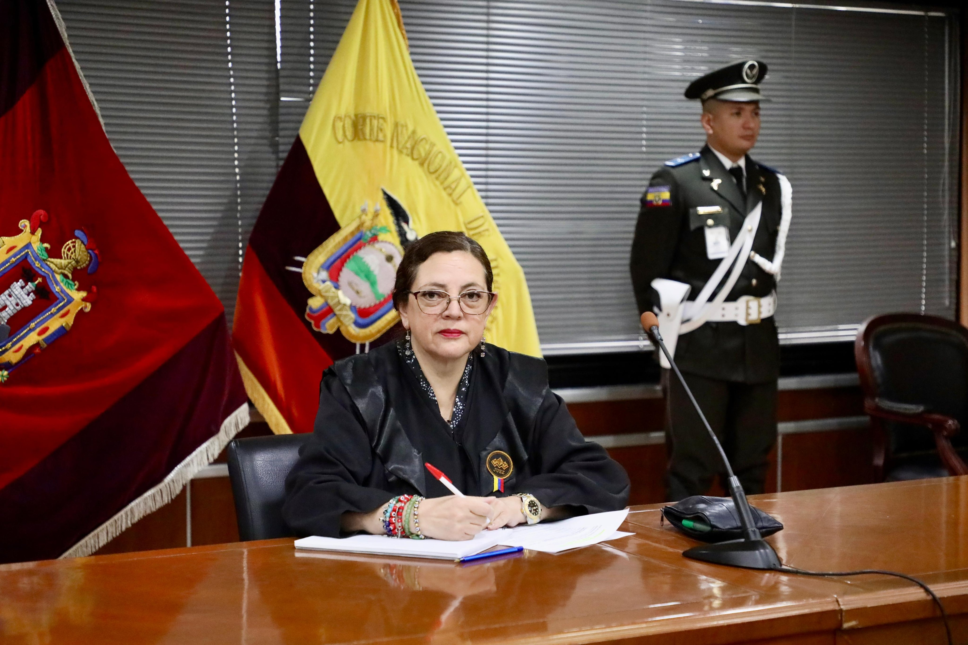La jueza nacional Daniella Camacho lidera esta diligencia judicial. Mientras Arauz y González se conectaron de forma telemática, la participación de Cuesta se limitó a su representante legal.