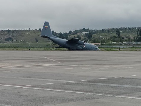 La aeronave militar terminó a un lado de la pista tras un accidente ocurrido durante actividades operativas en el aeropuerto de Cotopaxi. Pese al incidente, no hubo heridos ni fallecidos y todos los tripulantes resultaron ilesos.