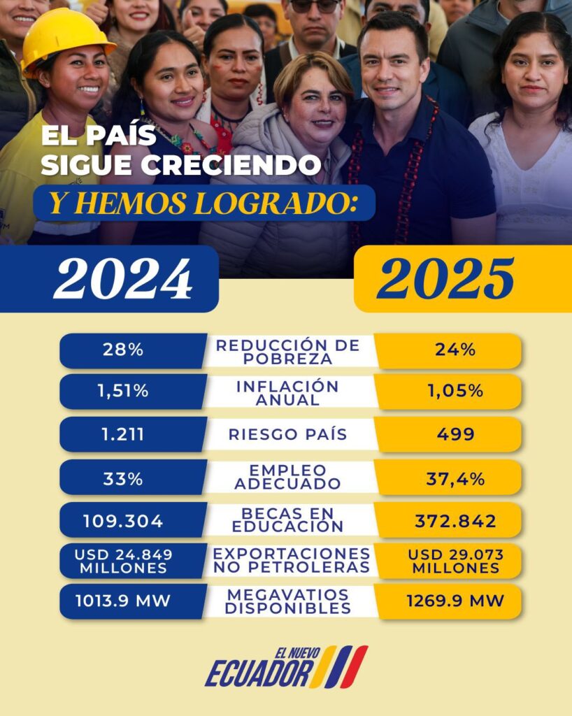La economía ecuatoriana registró un crecimiento interanual del 2,4 % durante el tercer trimestre de 2025, de acuerdo con cifras publicadas por el Banco Central del Ecuador (BCE). El resultado estuvo impulsado principalmente por el repunte del consumo de los hogares y el dinamismo de la inversión.