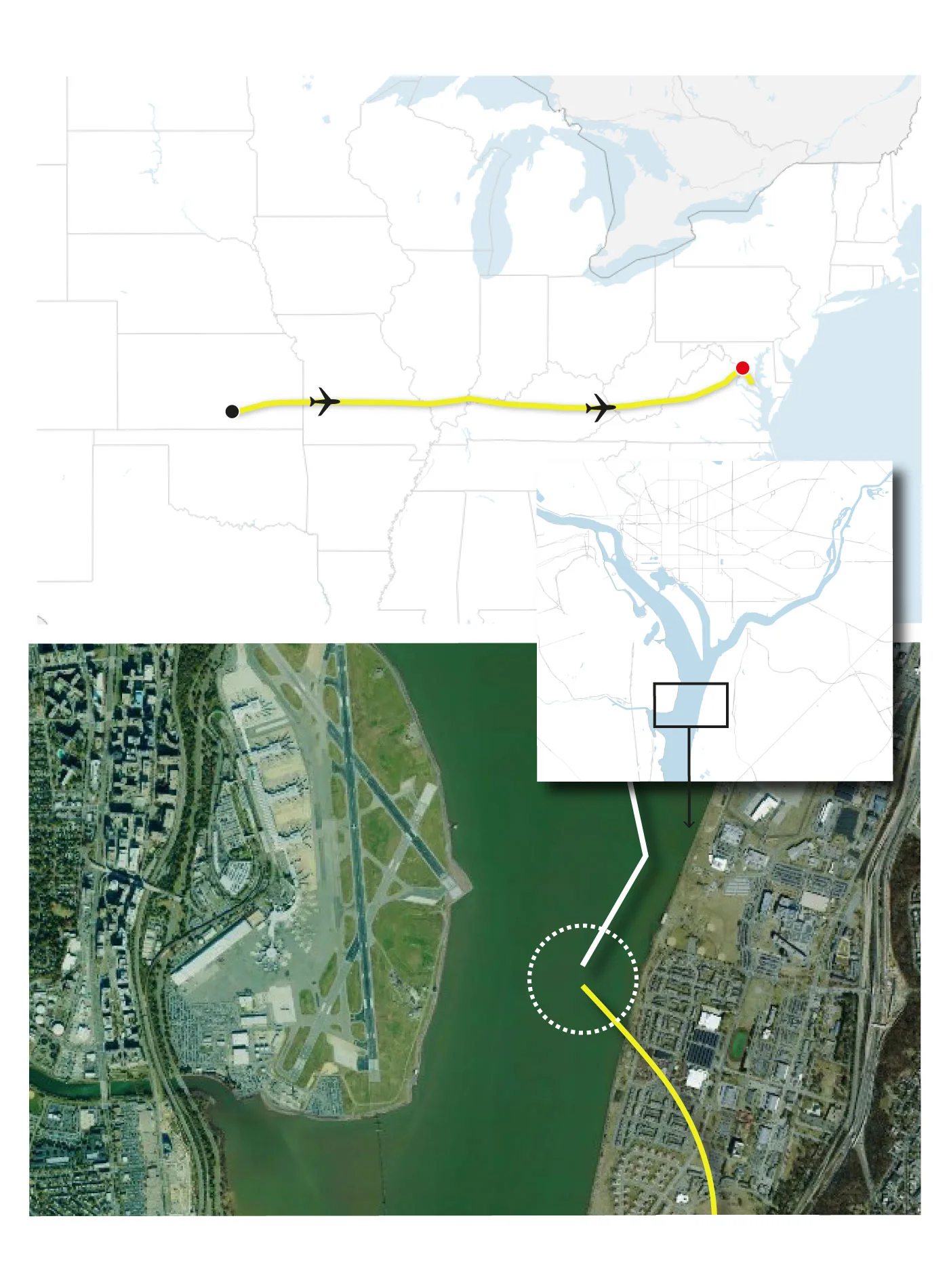 Un avión comercial con 64 personas a bordo sufrió una fatal colisión en el aire con un helicóptero militar Black Hawk la noche de este miércoles, mientras se aproximaba a la pista del Aeropuerto Nacional de Washington.