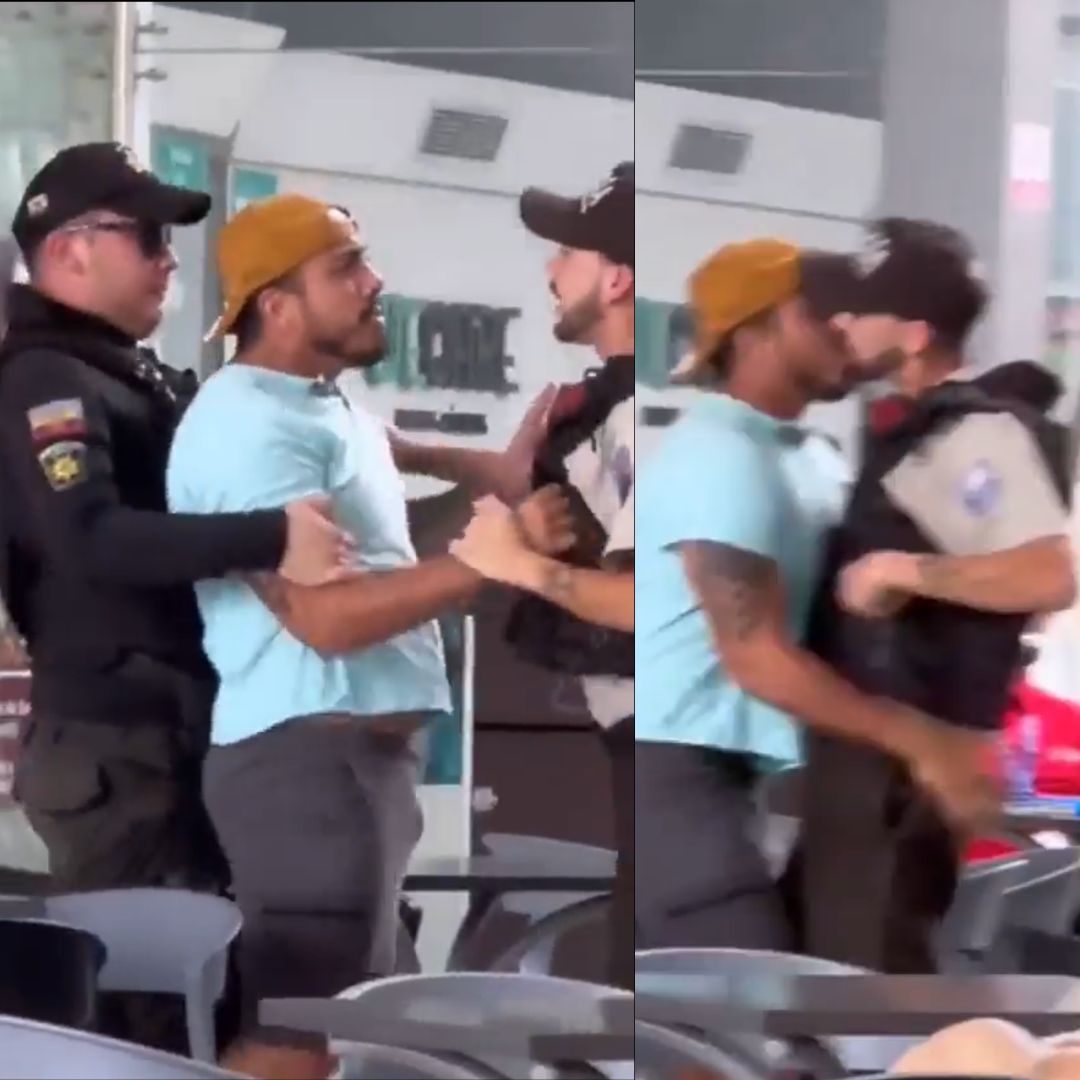 En el video, se observa como dos personas vestidas con el uniforme de la Policía Nacional, confrontan a un hombre quien entra abruptamente al lugar y entre gritos los uniformados lo capturan, sin embargo, todo se trataría de una broma cuando uno de ellos termina la escena con un beso con el supuesto delincuente.