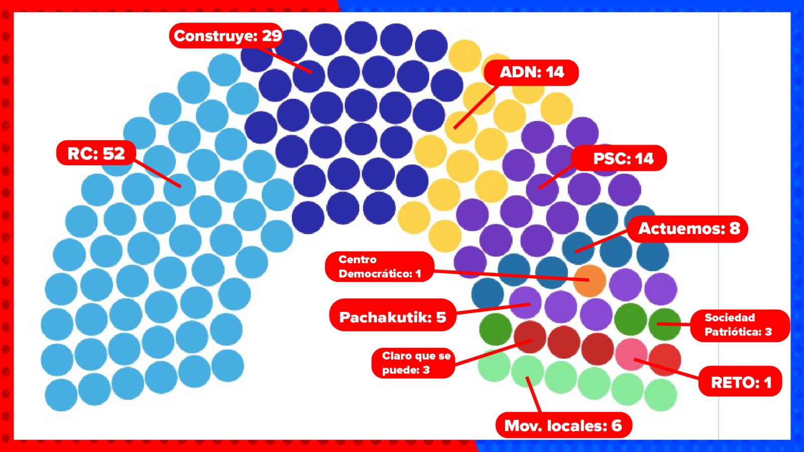 La alianza ADN ha obtenido un total de 14 escaños en la recién formada Asamblea Nacional. Es importante destacar que varios de los miembros de esta bancada son representantes de los movimientos que respaldaron su candidatura, en lugar de ser individuos cercanos a la cúpula de la alianza ADN. Esta dinámica puede reflejar la diversidad de perspectivas y apoyos dentro de la alianza, así como el compromiso con la inclusión de diferentes voces y grupos en la toma de decisiones políticas.