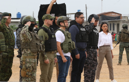 Noboa llegó a Durán para encabezar las operaciones de la fuerza pública contra el crimen organizado. Acompañado de tanquetas militares, visitó el sector La Delia tras el despliegue previo de cientos de policías y soldados en zonas periféricas donde se llevaron a cabo operativos.