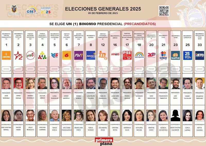 La decisión final sobre los candidatos que realmente disputarán el Palacio de Carondelet se tomará el 30 de diciembre de 2024. Mientras tanto, aquí están las parejas presidenciales postuladas por cada movimiento y partido político.