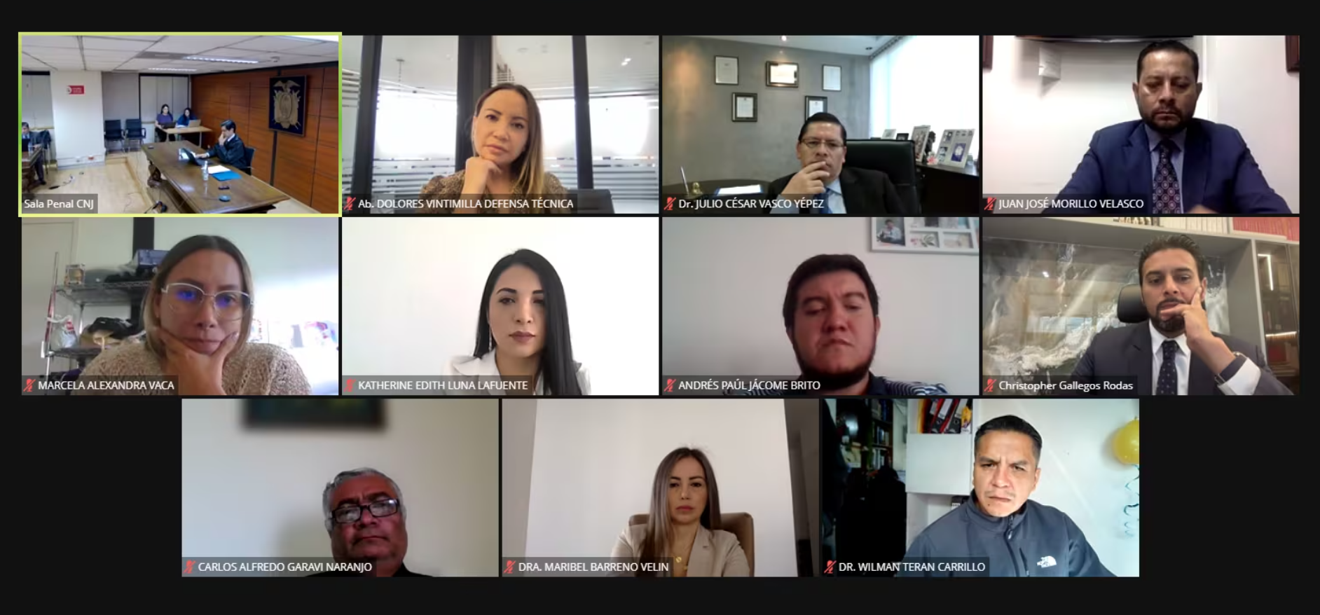 FOTO: Audiencia de formulación de cargos por el delito de obstrucción de la justicia contra el expresidente del CJ, Wilman Terán, y otros seis procesados en la Corte Nacional de Justicia. Captura de Pantalla/El Universo.