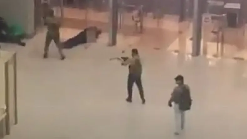 Las imágenes del video mostraron escenas de pánico durante el ataque, con multitudes de personas apiñadas, gritando y agachándose detrás de asientos acolchados mientras los disparos resonaban en el amplio salón.
