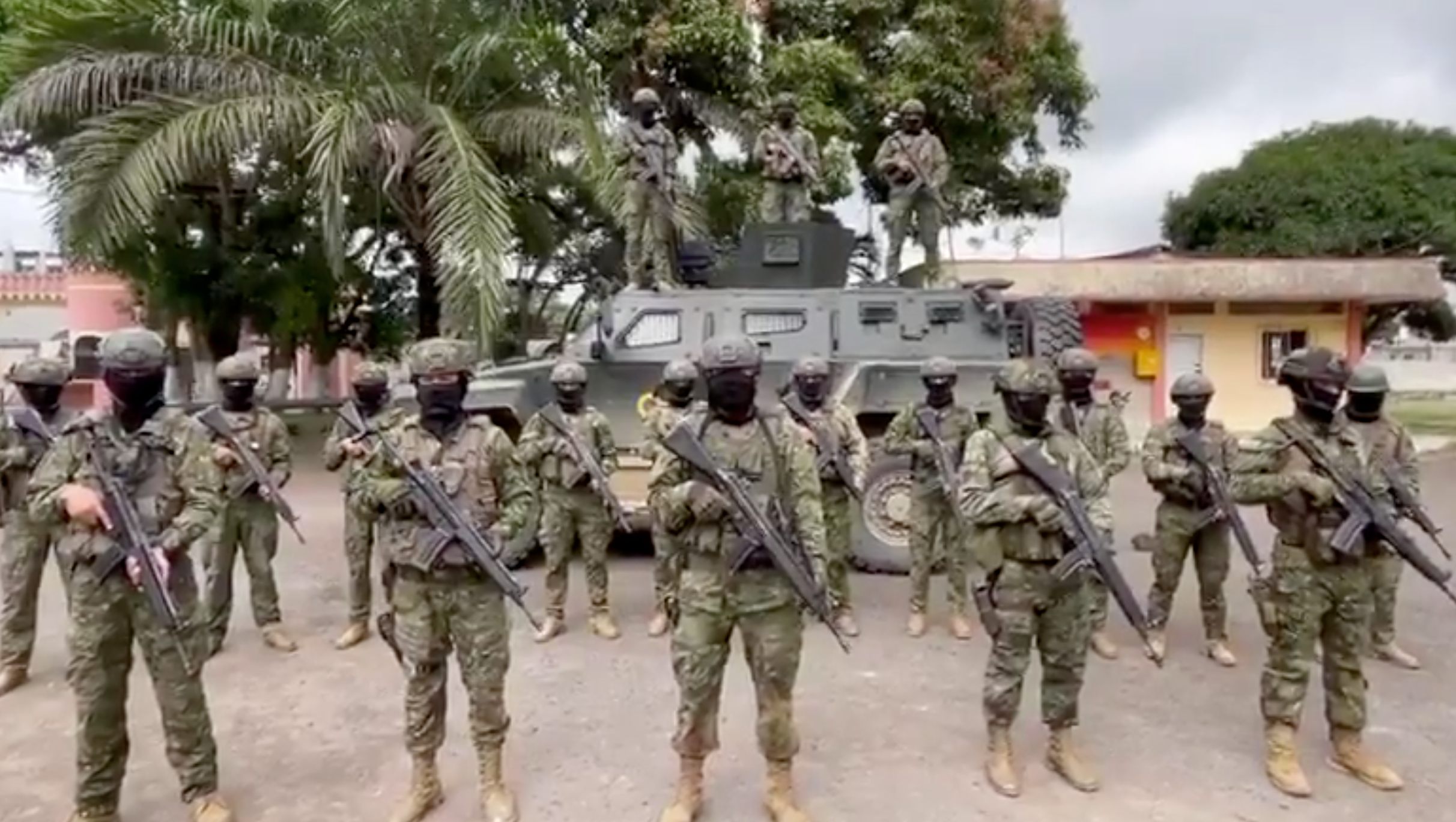 Militares arrestan a dos sospechosos vinculados al grupo terrorista Los Lobos luego de un intenso tiroteo en el cantón Camilo Ponce, Azuay. La grabación del enfrentamiento fue difundida por las Fuerzas Armadas.