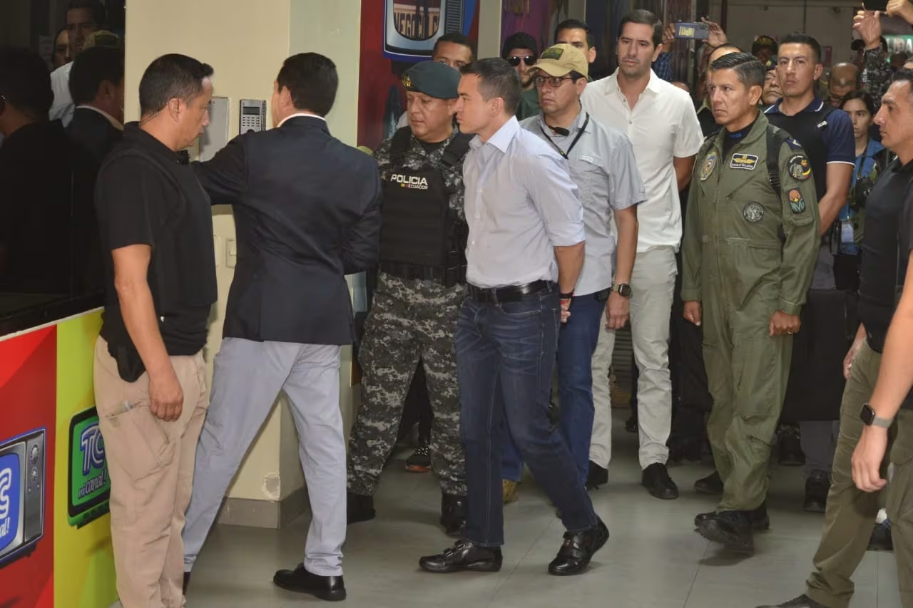 Antes de su arribo, más de 20 militares ingresaron al canal ubicado en el norte de Guayaquil, reforzando las medidas de seguridad. El mandatario fue recibido por el periodista Jorge Rendón, quien lo guió en un recorrido por las instalaciones. Durante el recorrido, Rendón recordó los detalles del ataque, describiendo cómo los encapuchados irrumpieron en el lugar, golpearon a varios colaboradores y generaron pánico. También presentó a Noboa a algunos de los empleados que sufrieron agresiones aquel día.