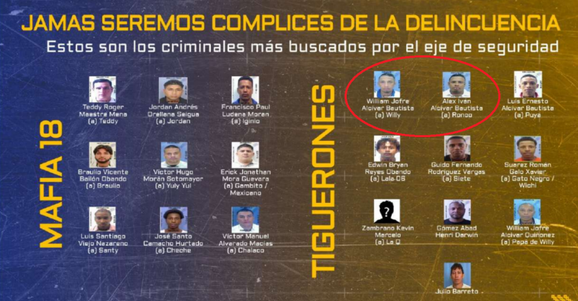 Los hermanos Willian Alcívar Bautista, conocido como Negro Willy, y Alex Alcívar Bautista, apodado Ronco, líderes del grupo terrorista Los Tiguerones, fueron detenidos en España.